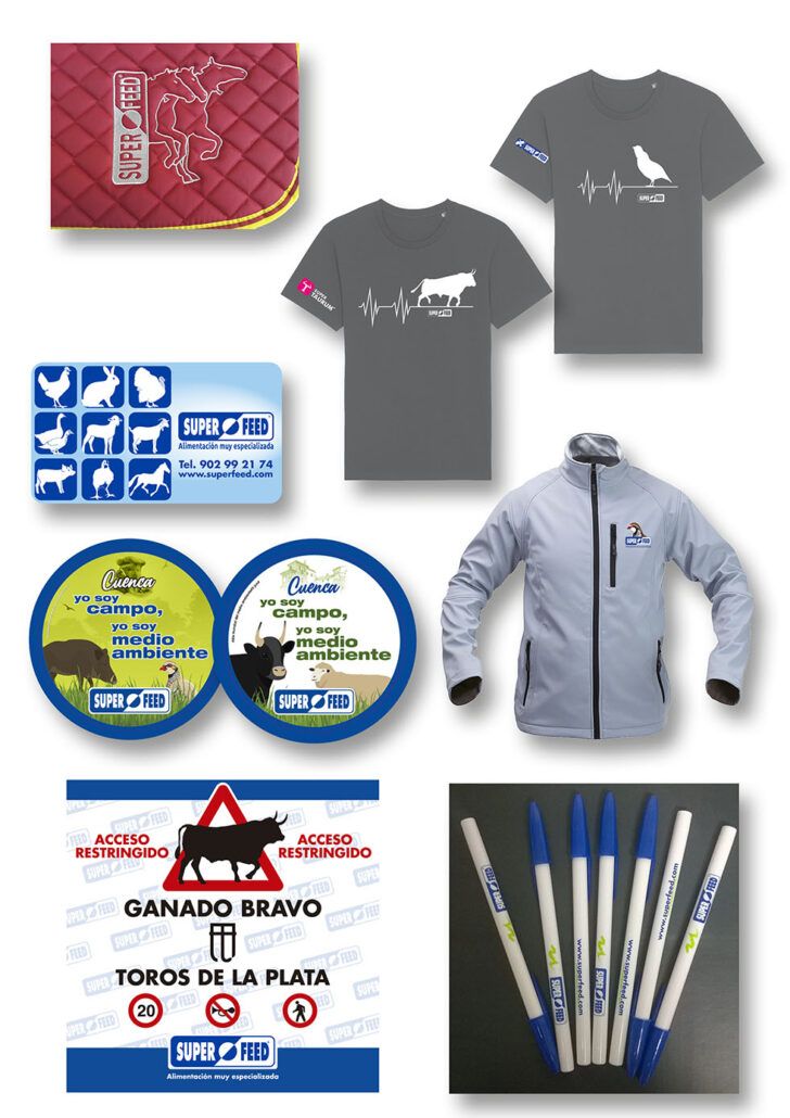 SUPER FEED ofrece a sus distribuidores un servicio de merchandising constante durante todo el año. Somos conscientes de que este servicio ayuda a la venta y por ello constantemente estamos proyectando y diseñando nuevos artículos. Mecheros, bolígrafos, vestimentas, carteles, en definitiva, todo tipo de material que sea útil y llame la atención.